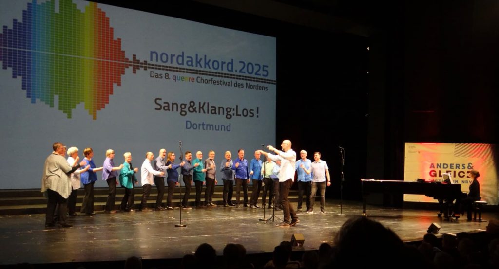Unser Chor “Sang&Klang:Los!” besteht seit Mai 1999 und ist Teil des KCR Dortmund e.V.. Heute hat der Chor ca. 30 Mitglieder aus Dortmund und Umgebung. Alle, die sich mit der LSBTIQ*-Community verbunden fühlen, sind herzlich willkommen!